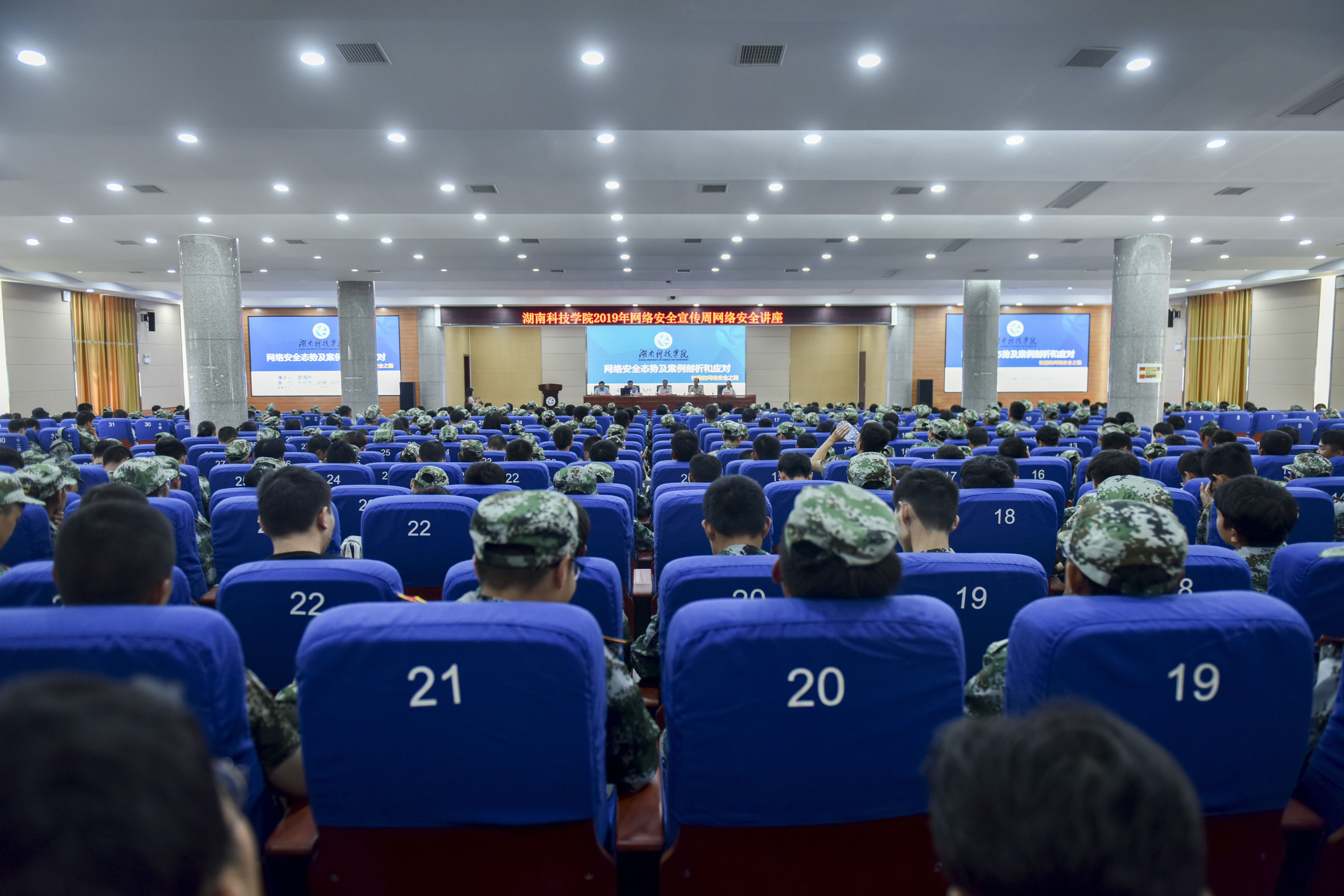 学校高度重视网络安全工作,党委班子召开专题会议集中学习习近平总书记关于国家网络安全工作“四个坚持”的重要指示精神,对学校网络安全工作进行统一布署,并通过宣传横幅、校园电子屏、校园网等形式营造浓厚的学习氛围,各教学学院开展了形式多样的“网络安全”主题班会、团日活动,推动网络安全教育理念深入人心。为了开展网络安全知识宣传普及,9月19日下午,学校邀请永州市公安局网技大队大队长宾海林来校开展“网络安全态势及案例剖析和应对”主题讲座,学校主要领导和相关职能部门负责人全校各单位网络安全信息员、部分学生及教师代表近800人到场学习,切实提高师生们网络安全意识和防护技术