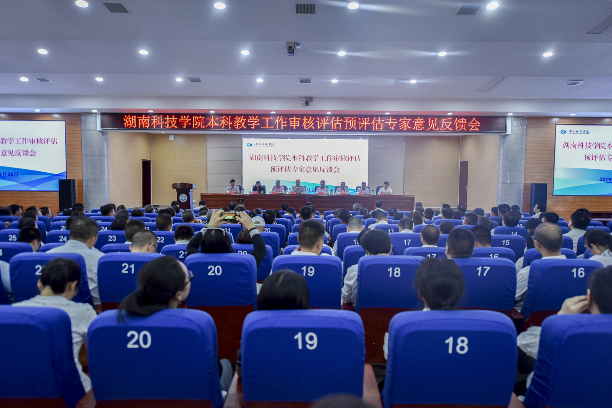 本网讯 9月26日下午,学校召开本科教学工作审核评估预评估专家意见反馈会。以广西师范大学原教务处处长高金岭为组长的七位专家组成员,党委副书记、校长李钢,校领导宋宏福、彭立威、郑山明、李常健、吴小林、程智开,全校副处以上干部,教务处、教学质量管理处、实验实训中心全体人员,各教学学院教务办主任、教学秘书参加会议。会议由专家组组长高金岭主持。