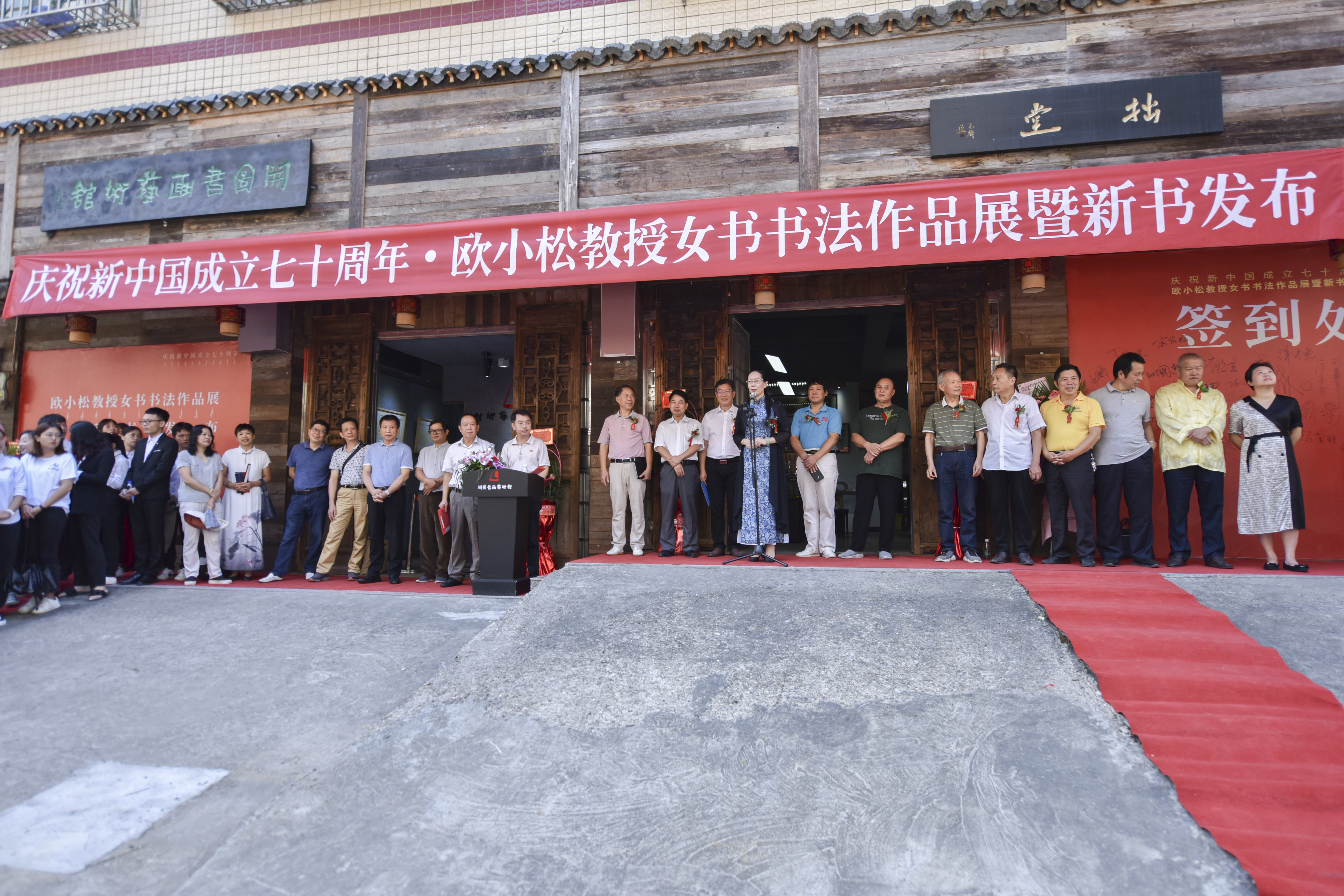 本网讯 品鉴作品,感受艺术家笔墨中饱含的家国情怀;挥毫泼墨,直抒礼赞新中国的美好心声。9月28日上午,庆祝新中国成立七十周年欧小松女书书法作品展暨新书发布会成功举办,副校长宋宏福、李常健,著名女书传承人李爱莲以及永州文艺界人士和永州市民前往观展。