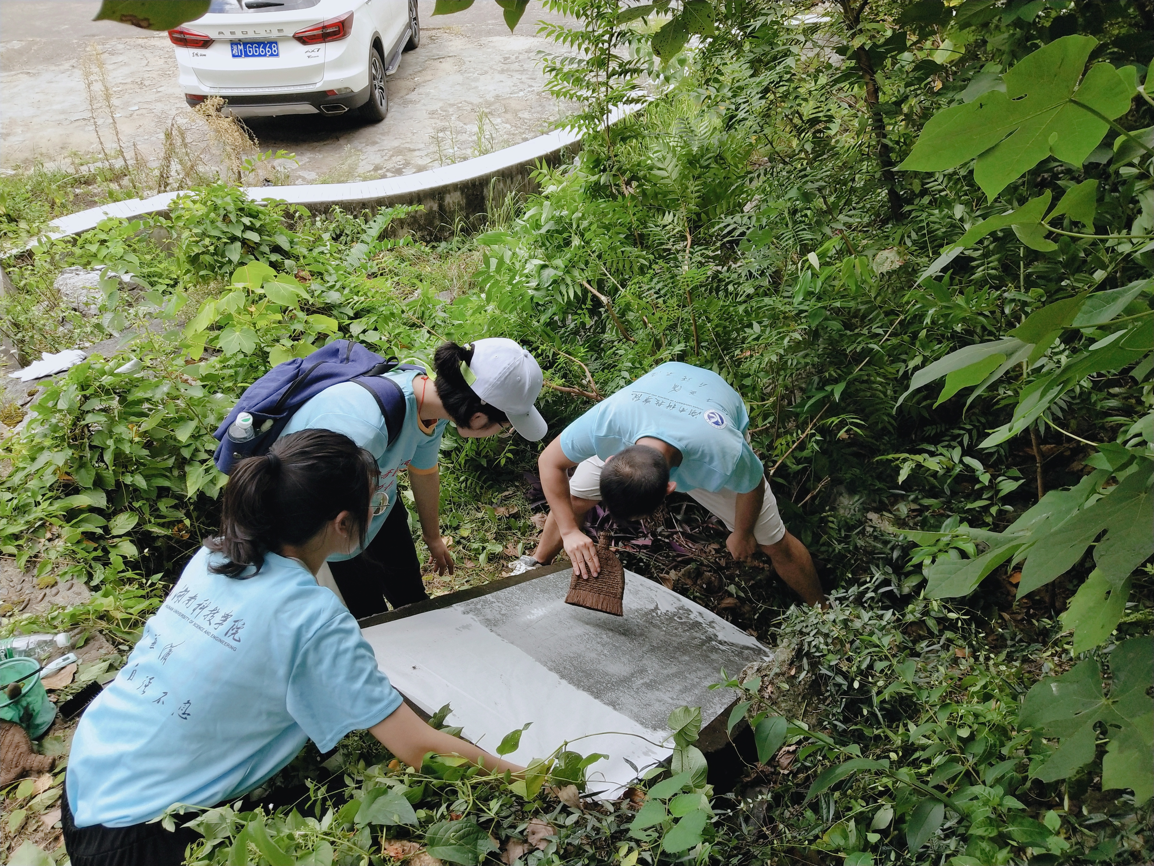 永州摩崖石刻是永州文化的大亮点和大特色,地方党委政府和各级文物部门历来高度重视摩崖石刻的发掘、保护和弘扬,积极打造永州石刻品牌。此次暑期三下乡社会实践活动以“开展永州摩崖石刻普查研究,启动世界文化遗产申报工作”为主题,师生们通过实地考察、走访调查、查询文献、咨询专家等方式开展。国学院师生在之前对道县、祁阳、零陵等地的摩崖石刻已有所了解,通过几天的实地考察,团队在状元山和龙山新发现了多处石刻,成员利用专业课程的知识将石刻记录下来,填补研究空白。