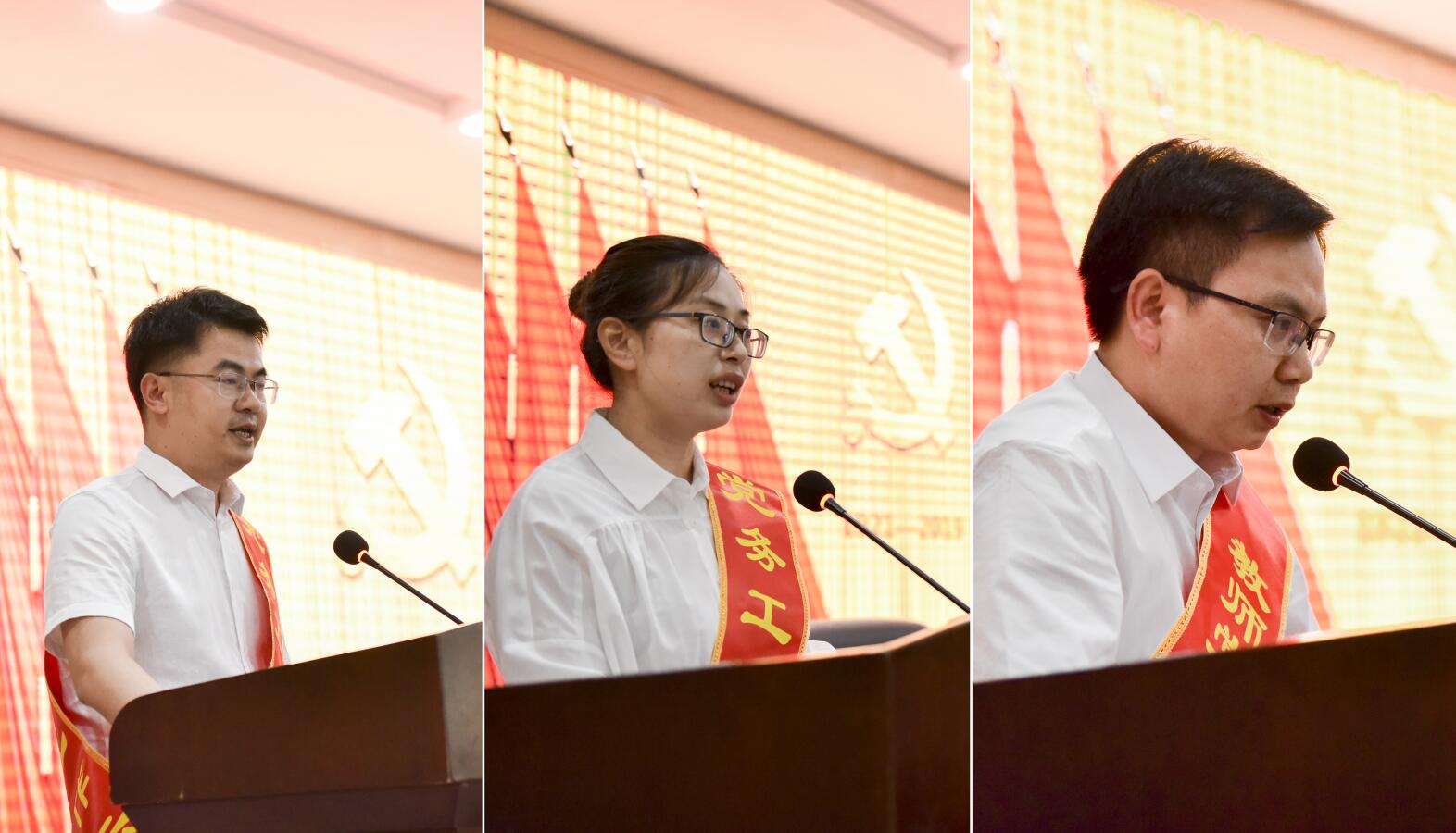 马克思主义学院党总支书记郑向晖,宣传统战部副部长陈玉皎,化学与生物工程学院教工第一党支部书记陈小明分别作为先进基层党组织代表、优秀党务工作者、教师党支部“双带头人”标兵代表发言,他们结合自己的工作实际,分享自己的奋斗故事。