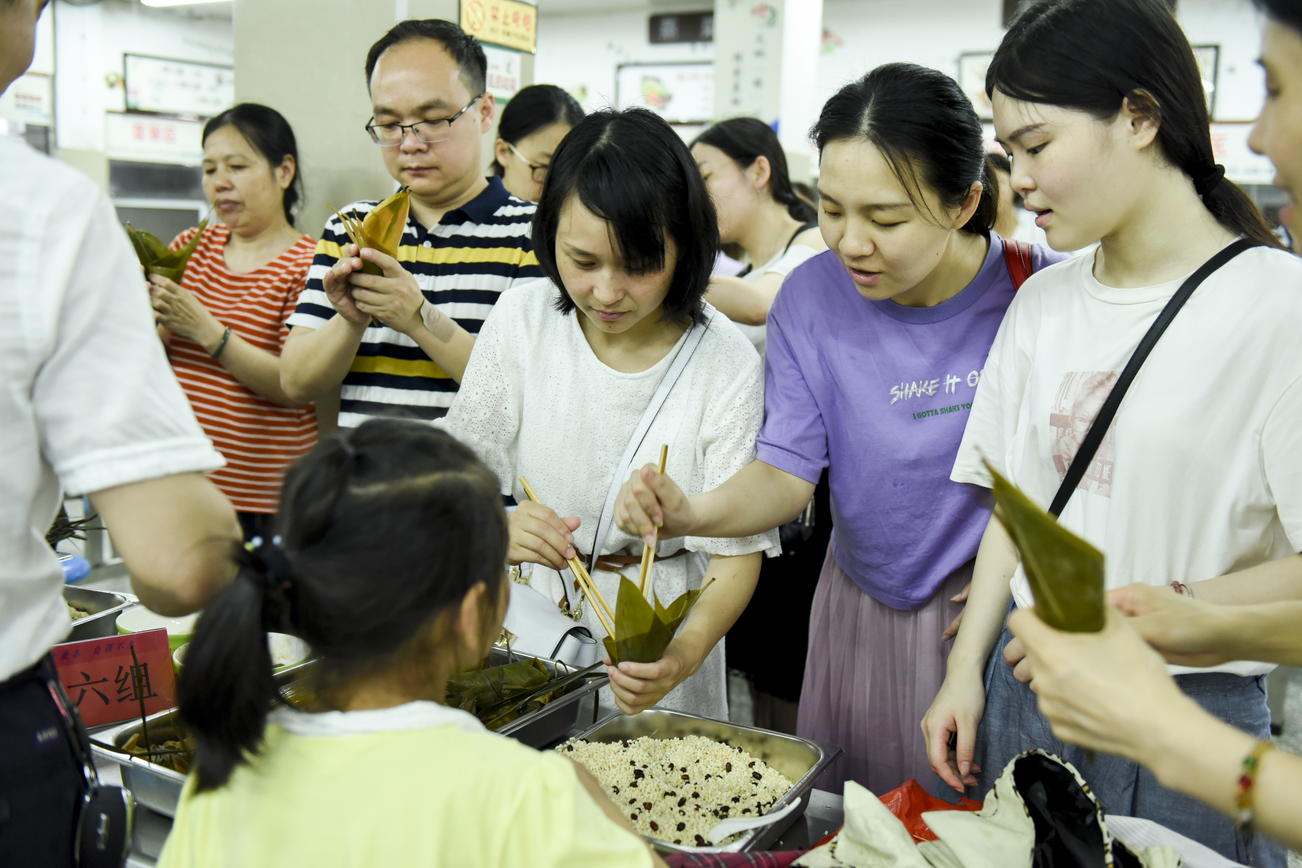 6月6日,星空app官网食堂,教职工在包粽子。当日,星空app官网机关分工会举办端午节包粽子体验活动,教职工们自购食材,一起包粽子、煮粽子、吃粽子,增进感情交流,感受民俗文化,共度端午佳节。