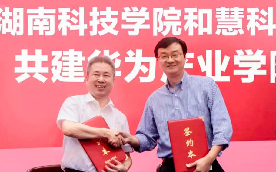 研讨会上, 曾宝成与慧科集团总裁王浩共同签定开展深度校企合作协议,共建“华为产业学院”,共同培养大数据、物联网、人工智能等新兴技术人才。双方共建的华为产业学院将于今年9月迎来首届大数据专业新生,这也将是湖南省本科院校的第一批真正意义上的产教融合联合培养的新工科专业学生。