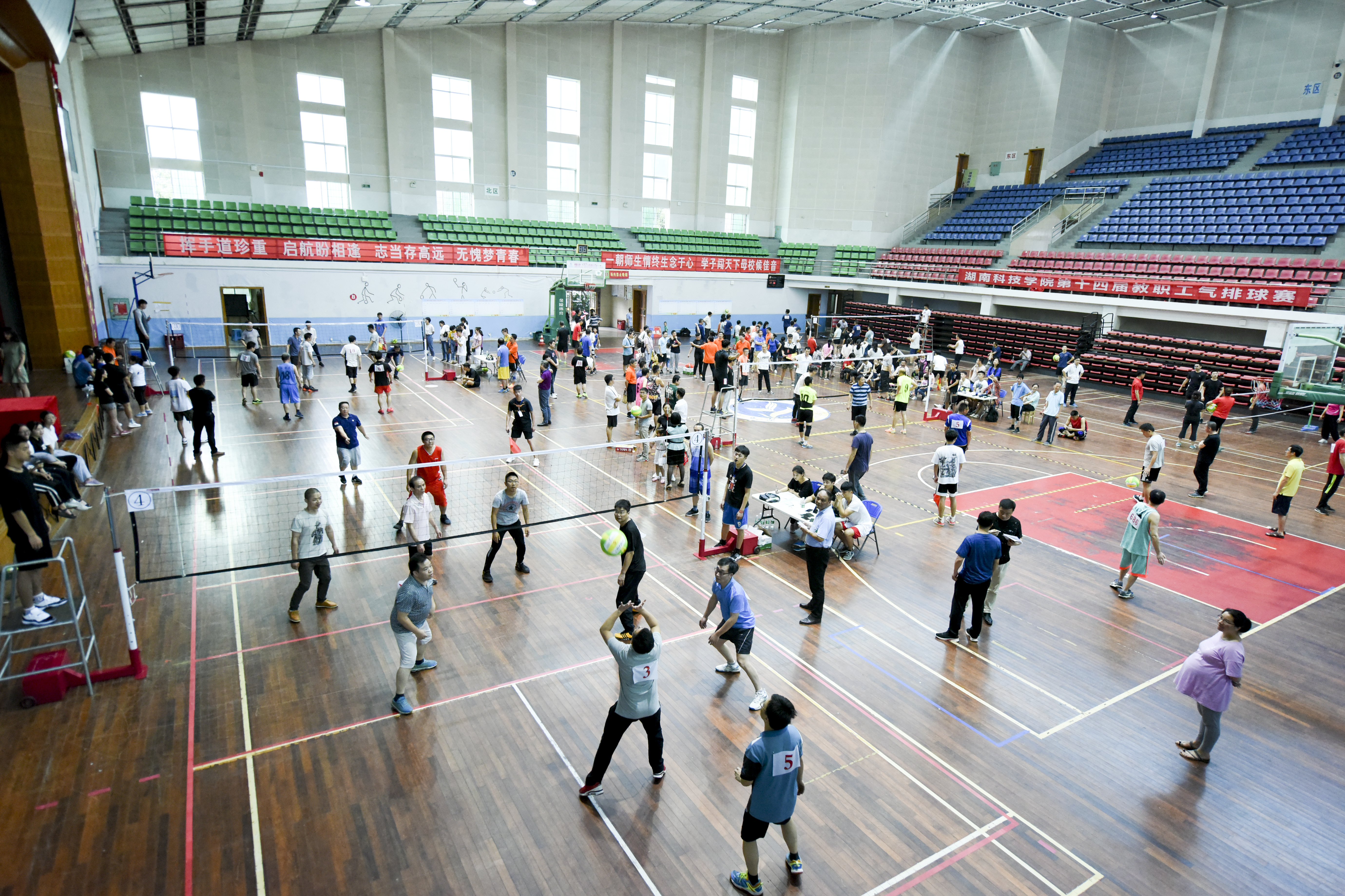 由音乐与舞蹈学院对体育学院,图书馆对美术与艺术设计学院,外国语学院对经济与管理学院,传媒学院对旅游与文化产业学院-国学院联队组成首发阵容。比赛开始之际,每组参赛双方进行了赛前握手,老师们欢乐言笑,气氛十分融洽。即时哨声响起,各位参赛运动员以饱满的热情投入比赛,场上各方队员默契配合,全身心地传球、垫球、扣球,不断组织着进攻,巧妙的拦网与精彩的扣杀一波接着一波,观众的加油声、欢呼声、鼓掌声一浪高过一浪,体育馆内洋溢着“我运动、我快乐”的浓厚气息。