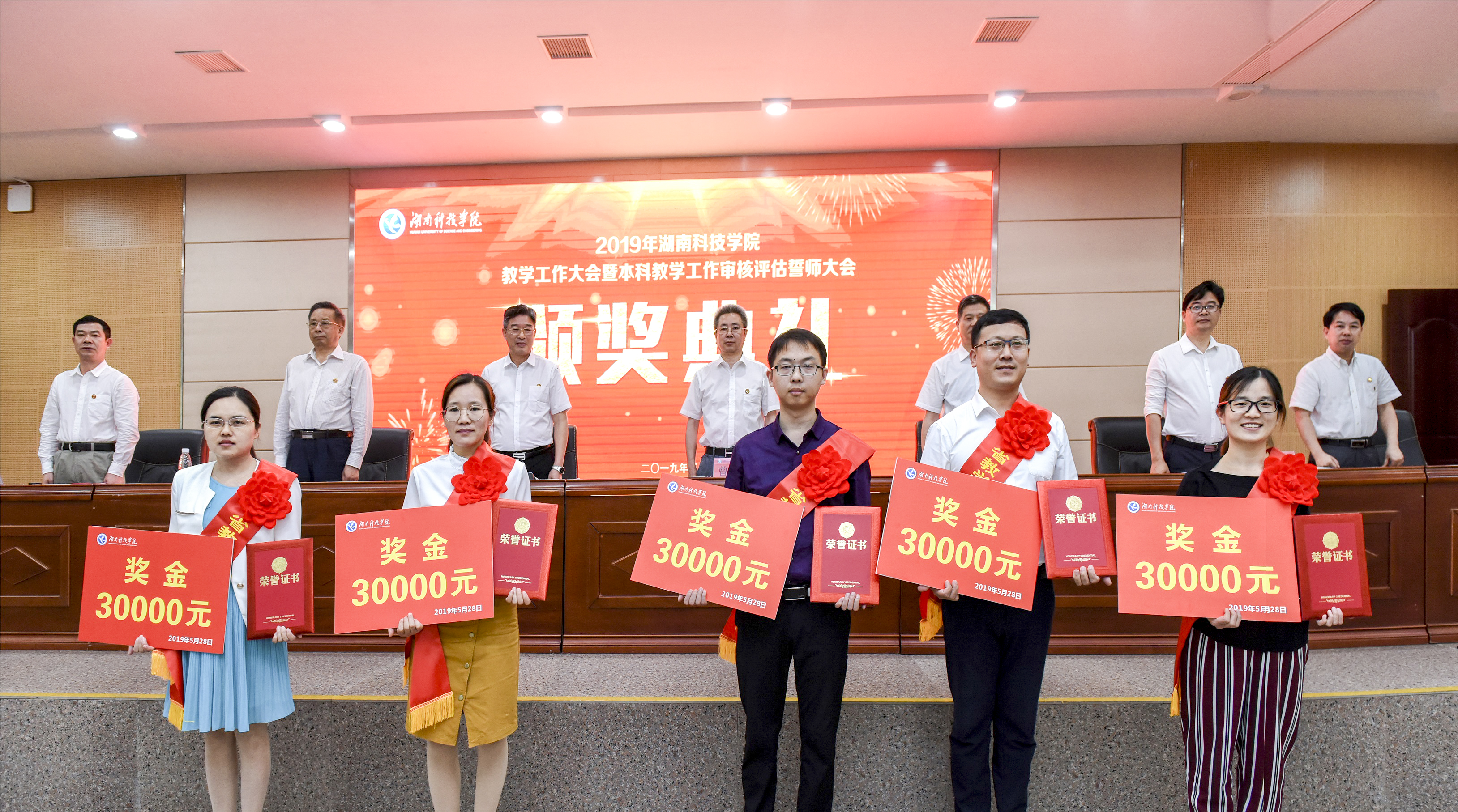 随后,副校长宋宏福宣读了受表彰教师名单:2016-2018年湖南省课堂教学竞赛一等奖获奖教师廖阳、黄雪梅、闫荣玲、游珍珍、李超、廖春艳、罗雄文、段华斌,2018年湖南省信息化教学竞赛一等奖获奖教师郭恩平,2016-2018年学生学科竞赛优秀指导老师夏炳梅等104人次。校领导为获表彰的先进教师代表颁奖。