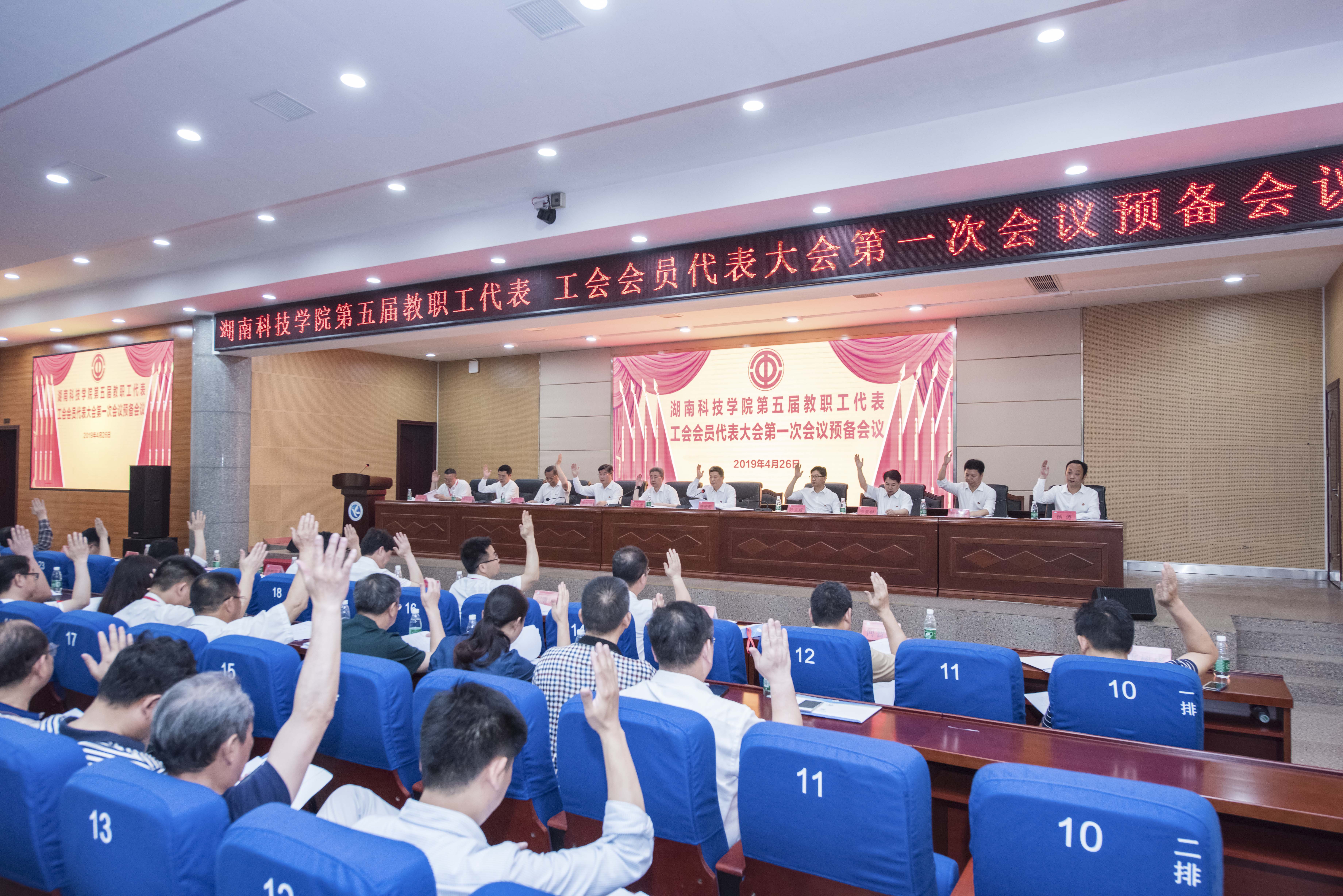 4月25日下午4:30,学校第五届教职工代表  工会会员代表大会预备会议及主席团第一次会议在潇湘大讲堂举行。