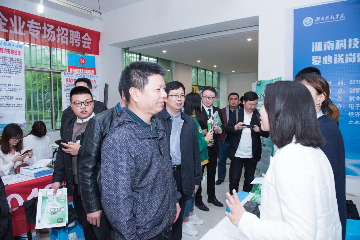 本网讯   4月29日,学校举办2019届毕业生爱心送岗暨校友企业专场招聘会。此次招聘会共吸引省内外88家用人单位参会,其中校友企业17家,提供就业岗位2100余个,副校长程智开来到现场与用人单位和毕业生进行交流。