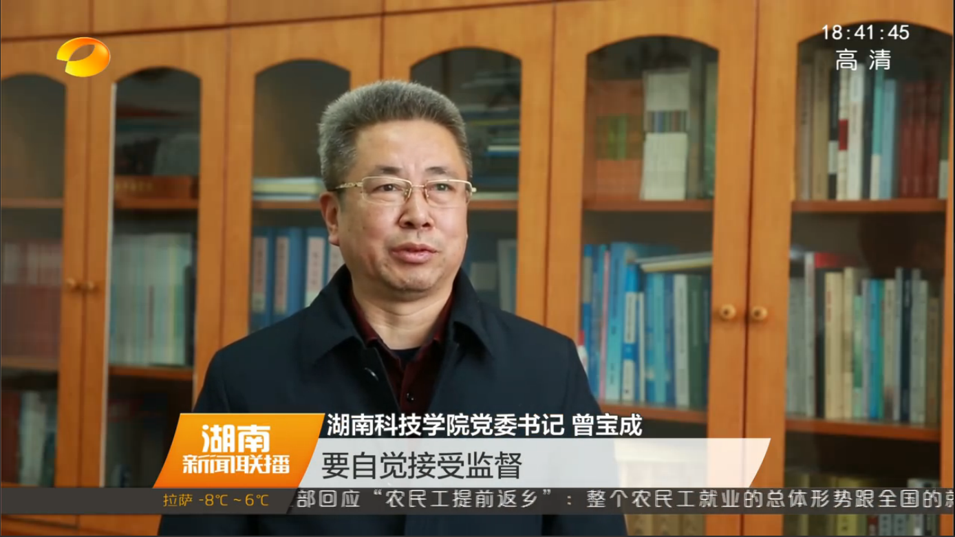 本网讯 1月16日,湖南卫视新闻联播以《湖南干部群众学习十九届中央纪委三次全会精神》为题报道了我校师生学习十九届中央纪委三次全会精神的情况,引起社会各界广泛关注。