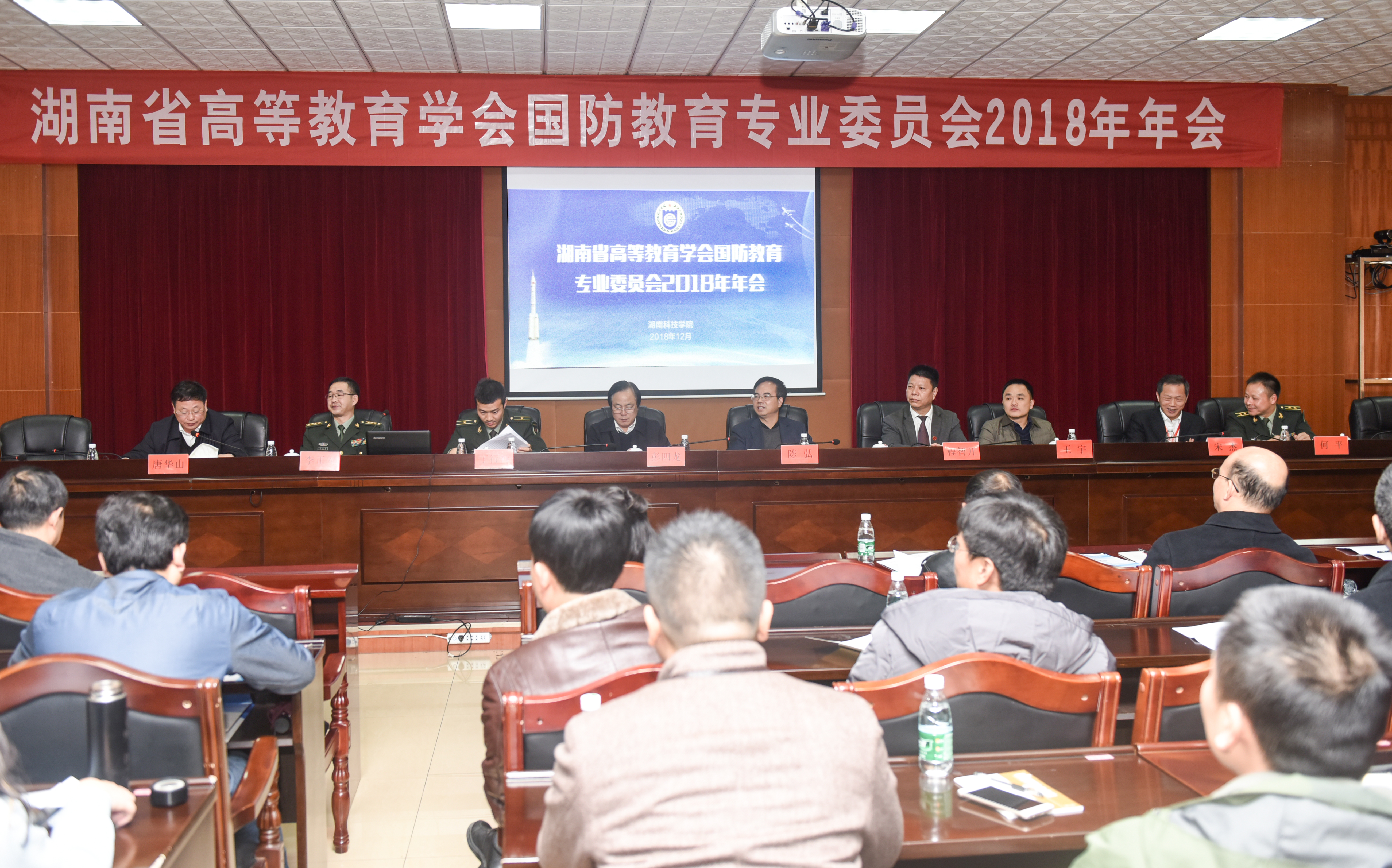 本网讯  12月6日上午,湖南省高等教育学会国防教育专业委员会2018年年会在我校召开,省教育厅体卫艺处处长彭四龙,校党委书记陈弘,副校长程智开,省军区、省教育厅相关领导以及学会会员共120余人参加。