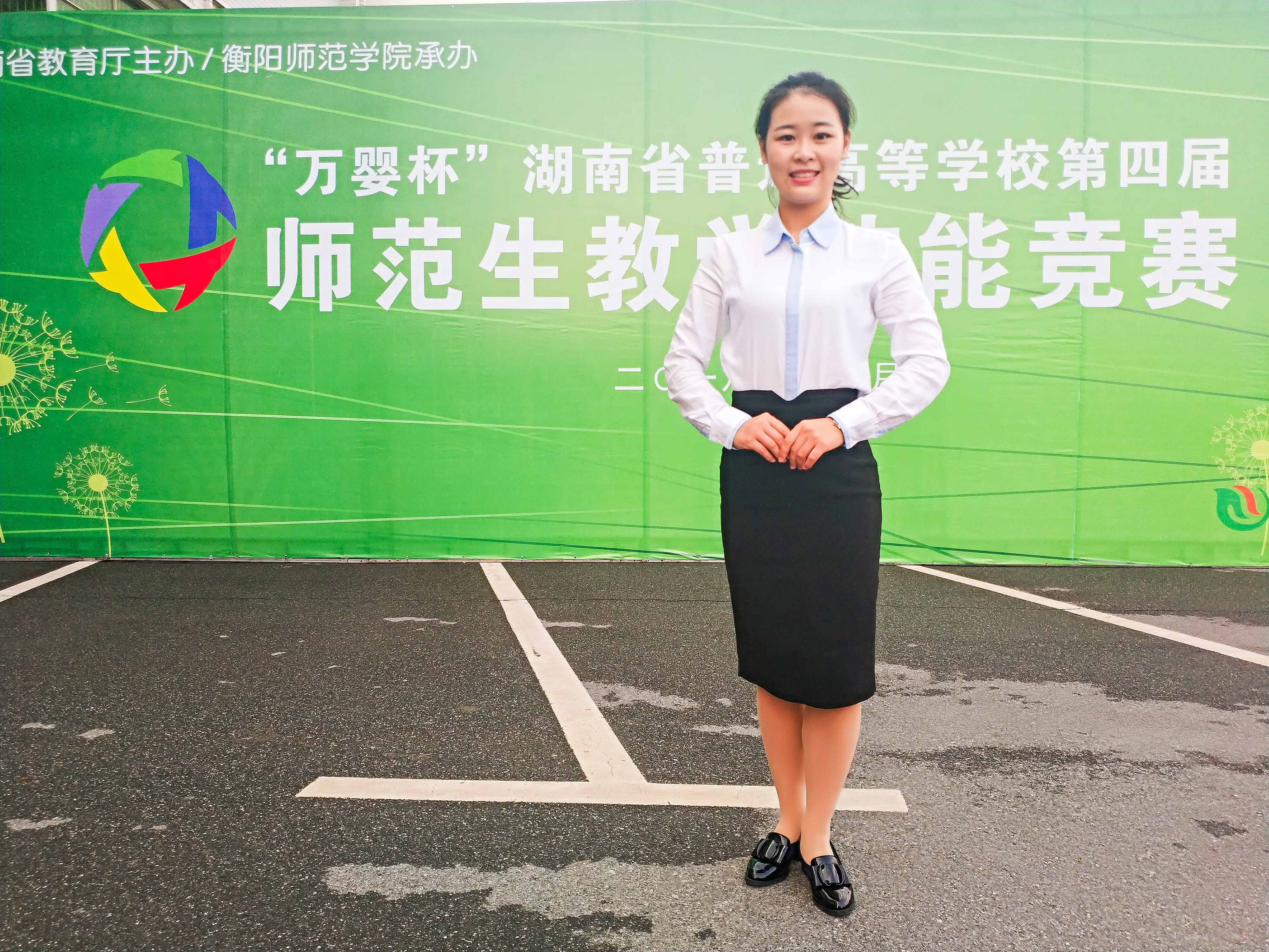 “以感恩的心来讲课,感谢学生听课,如此才能上好一堂课。”陶锦冰今年代表学校参加湖南省第四届师范生教学技能大赛,指导老师朱湘萍经常用这句话鼓励她。因为感恩,她想要在比赛时呈现出最精彩的课堂,便也投入最大的努力。当别人都趁着暑假乐此不疲地刷宫斗剧时,她却把所有初中物理教学视频看遍,虽然自己琢磨效率低,但她觉得这一步骤必不可少,因为老师门的启发点化可以让自己少走很多弯路。九月份开始,她在老师的指引下逐渐完成备赛的三个阶段:规范内容、提升特色、归纳总结。其中第二个阶段让她感到最辛苦,“每天都要录完九个讲课视频,如果卡壳了又要重新录制,而且讲课的内容还是重复第一阶段的。”备赛的一个半月里,她白天录视频,晚上接着熬夜修改教案,有时只睡了三四个小时,第二天却又朝气蓬勃地站在录像机前。但她从未表露出厌倦疲劳,每一个视频的录制都高标准要求自己。从知识点的设计,到教学语言和教学姿态的规范,老师总是会根据她的讲课视频不断给她提出修改意见,鼓励她进步。“朱老师不仅要上课,还有一个六个月大的小宝宝要照顾,她却把上课以外的时间大部分贡献给了我视频的修改。”陶锦冰对此心怀感恩,最后也用全省比赛一等奖的优异成绩回报老师的无私付出。