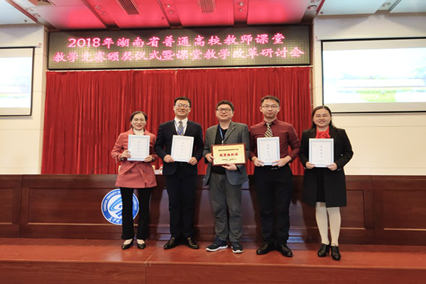 本网讯    10月27日至28日,湖南省高校教师课堂教学竞赛在长沙理工大学落下帷幕。我校推荐的5位参赛教师中4位进入现场决赛,其中理学院廖春艳(理科组)、传媒学院李超(文科组)、土木与环境工程学院罗雄文(工科组)和电子与信息工程学院段华斌(工科组)四位教师喜获一等奖,且同时荣获湖南省教育工会颁发的“湖南省普通高校教学能手”荣誉称号。我校获一等奖数量与湖南师范大学、湖南大学并列第一,获得优秀组织奖,为历年来在该赛事上成绩最好的一次。