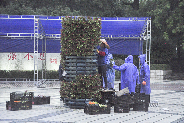 悬挂欢迎横幅、搭建展棚、翻新场所、疏导交通……校园里随处可见工作人员忙碌的身影。尽管阴雨连绵,但他们仍坚守在自己的岗位上,只为以最好的面貌迎接此次大赛。