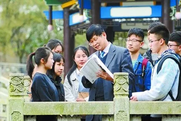 欧阳晓平院士(中)给学生答疑解惑