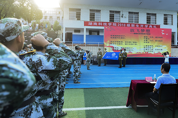 本网讯  “我是湘科院学子,我是新时代青年。我定珍惜青春,崇尚德才兼备;我定不负韶华,践行自强不息。志存高远,胸怀家国天下;心无旁骛,努力读书学习。爱国、立志,肩负起时代重任;求真、力行,担当起历史使命。让青春梦想,在祖国万里长空放飞;让复兴之梦,在我们青年一代实现。”9月21日下午,学校举行新生勤奋学习宣誓仪式,4000余名新同学以别样的课堂开启了全新的大学生活。