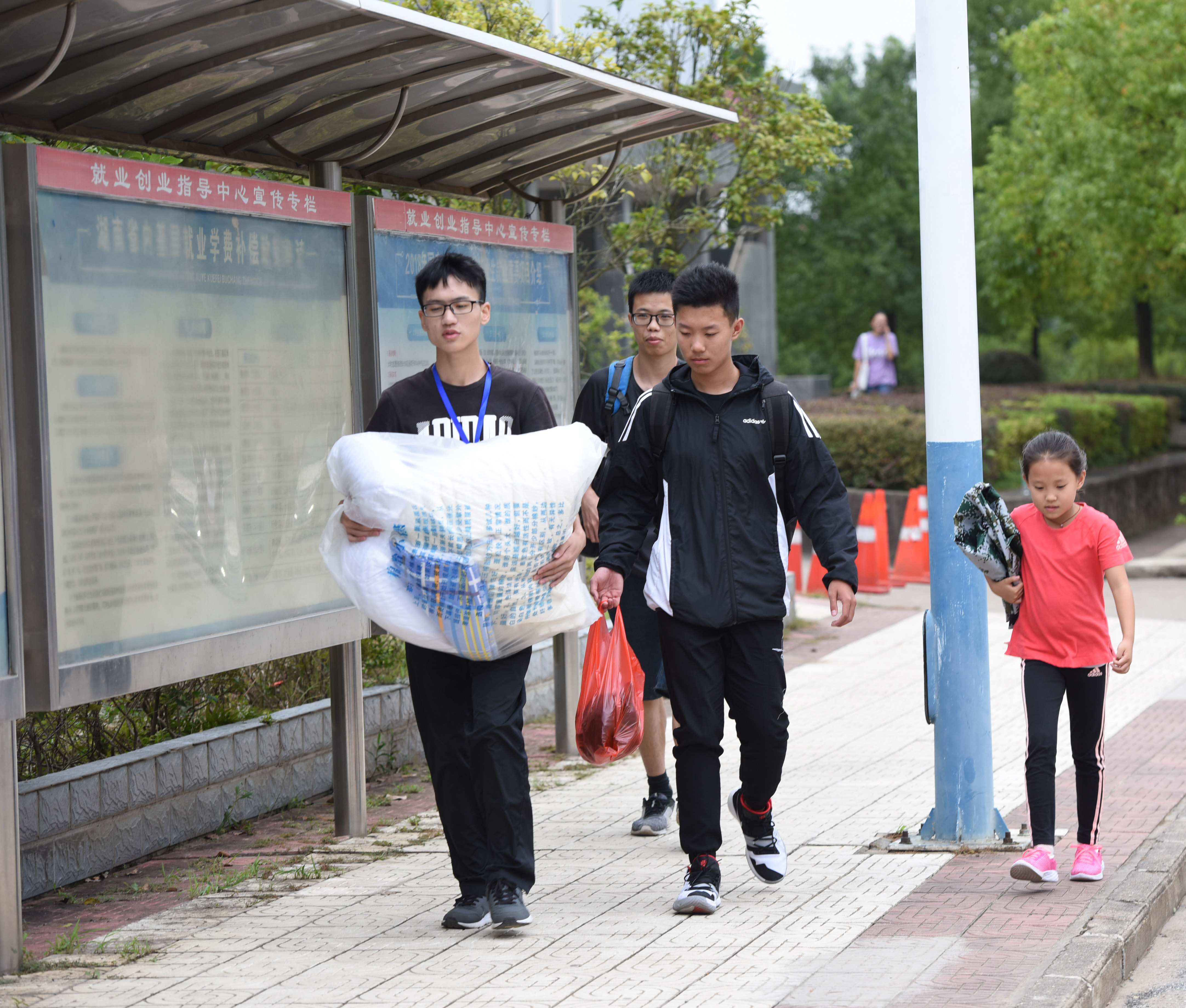 跨越了三千多公里,火车运行了四十多个小时,化学与生物工程学院的薛同学终于来到了学校。从入校到完成报到来到宿舍,一路上行李虽多,但薛同学却坚持自己拿行李,不想让父母太劳累,这让家长也很是欣慰,现场一片其乐融融的景象。在报到过程中,他兴奋地说,“来了之后感觉学校还挺好的,学长学姐们也很热情。”薛同学的家长是一名退役军人,送孩子来到学校后也感受到了学校师生的满腔热忱,希望孩子能在学校成长成才。