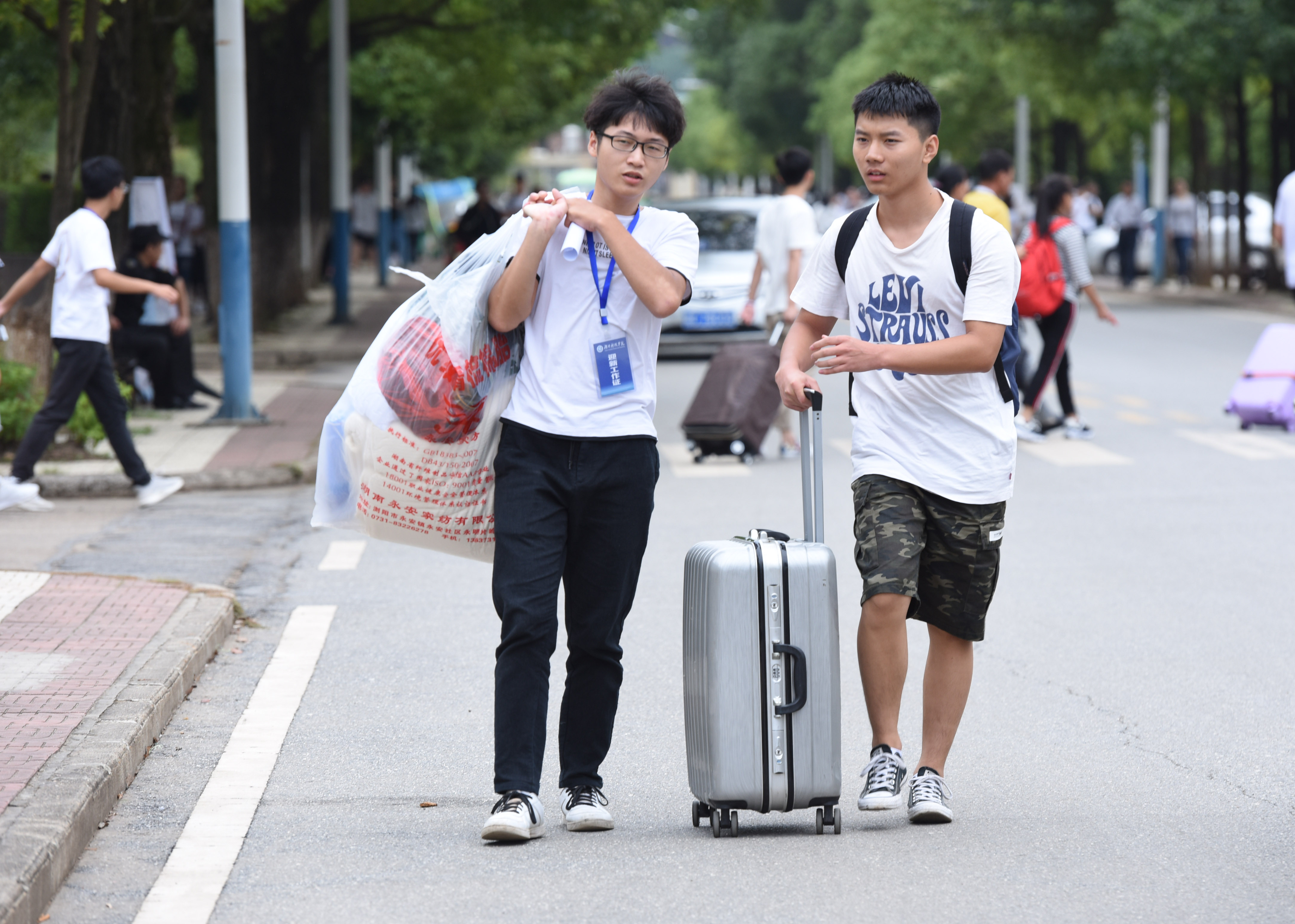 自迎新工作开始,志愿者就活跃在火车站、汽车站等各个接站点,校园里也到处都是他们奔波的身影。志愿者们热情地帮助新生,带领新生报道、搬行李、领生活用品、介绍校园等,为新生提供“一条龙”服务,让来自五湖四海的新生都能感受到家的温暖。在综合楼前,志愿者们举着各个学院的牌子迎接新生,尽管天气炎热汗水湿透了衣服,志愿者们依旧面带微笑,用心服务。国贸1702班的邱宇洁说:“我们只是给学弟学妹们一些力所能及的帮助,在帮助他们的同时,自己也很开心。”说完,邱宇洁又马不停蹄的加入到了迎新团队中。电子与信息工程学院的一位同学家长感动地说:“他们的服务太周到了,对我们很热情,有这些热心的孩子带着报到,我们放心多了”。