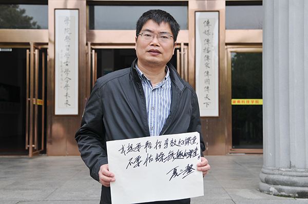传媒学院夏三鳌老师,一直思考着怎样才能让学生在课堂上真正学到东西,他说,“希望我们的课堂有更多有效的师生之间的相互交流,能够提高学生的学习主动性与创新思维。”夏老师一直在用心教育、不断创新,他相信学生有无限的可能性。