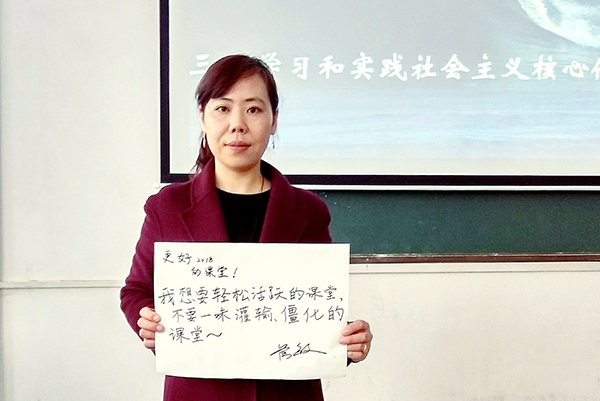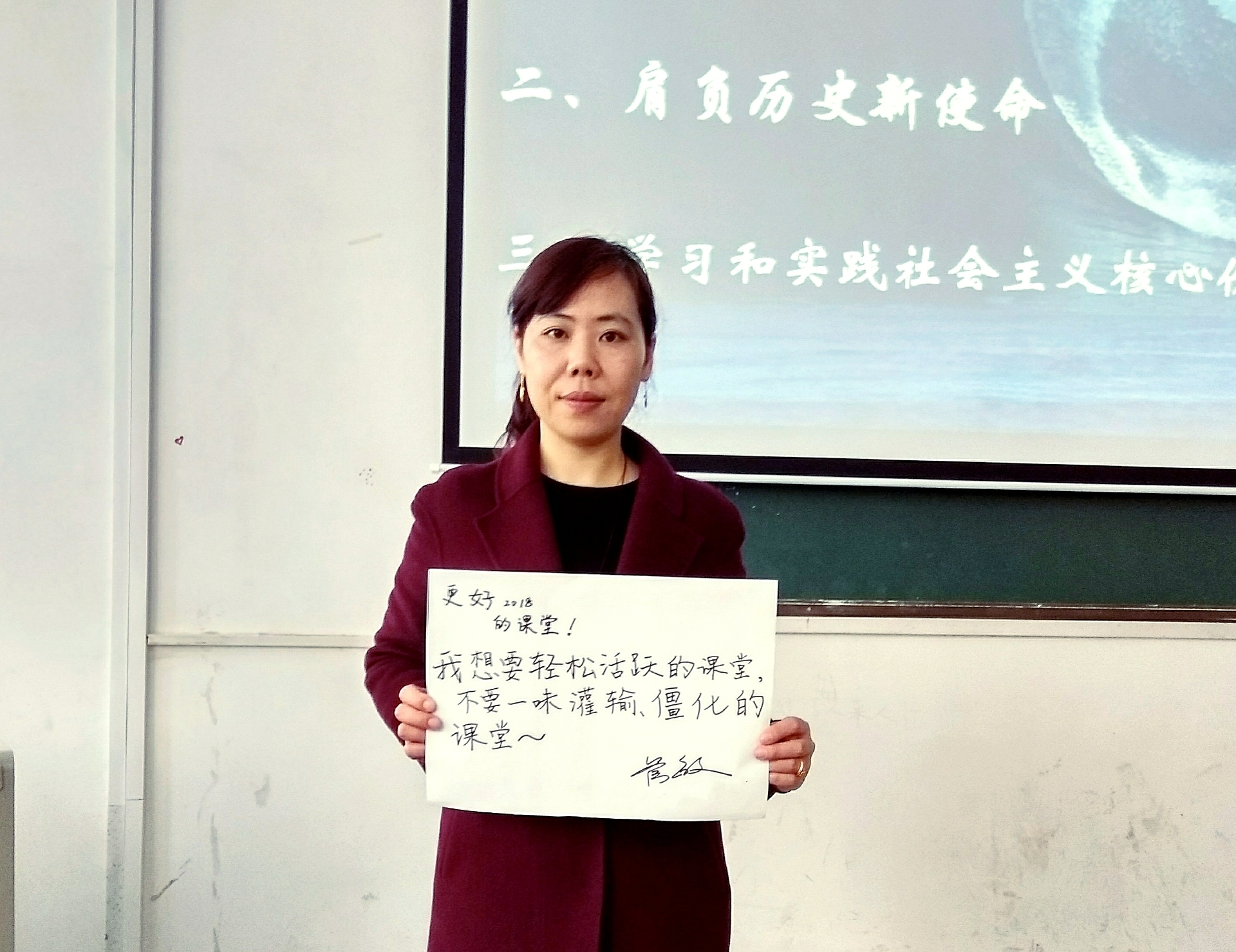 “我想要轻松活跃的课堂,不要一味灌输、僵化的课堂。”马克思主义学院管敏老师谈及心中理想的课堂,她希望以自主、合作、探究的学习方式充分发挥学生的主观能动性,唤醒每个学生自我改变、自我发展的意识。