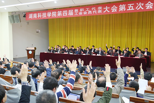 闭幕会上审议通过学校工作报告、工会工作报告、学校2017年财务预算执行情况和2018年财务预算安排报告
