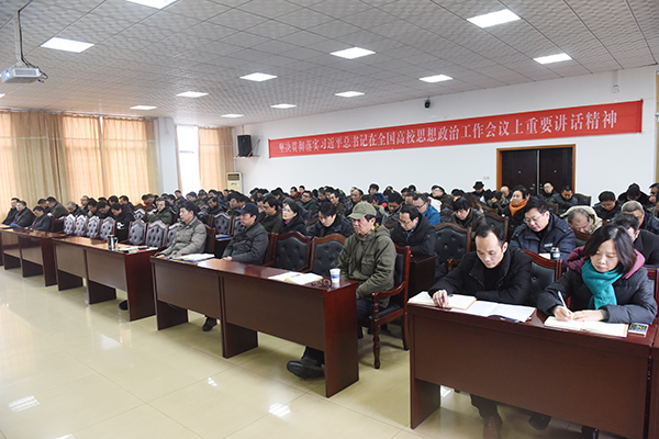 本网讯 1月26日上午,学校在会议中心一会议室召开全体中层干部大会。校长曾宝成总结回顾了一年以来的各项工作,并详细部署寒假工作。校领导唐艳明、宋宏福、彭立威、李常健、吴小林、程智开出席,全体中层干部参加会议。会议由党委副书记唐艳明主持。