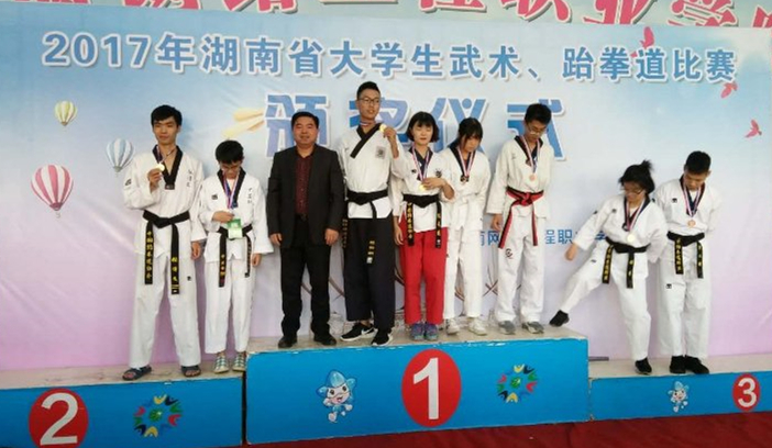 本网讯 11月1日至3日,湖南省大学生跆拳道比赛在湖南网络工程职业学院举行,我校共派出7名运动员参赛。经过激烈角逐,我校运动健儿荣获2金1铜和2个第五的优异成绩。