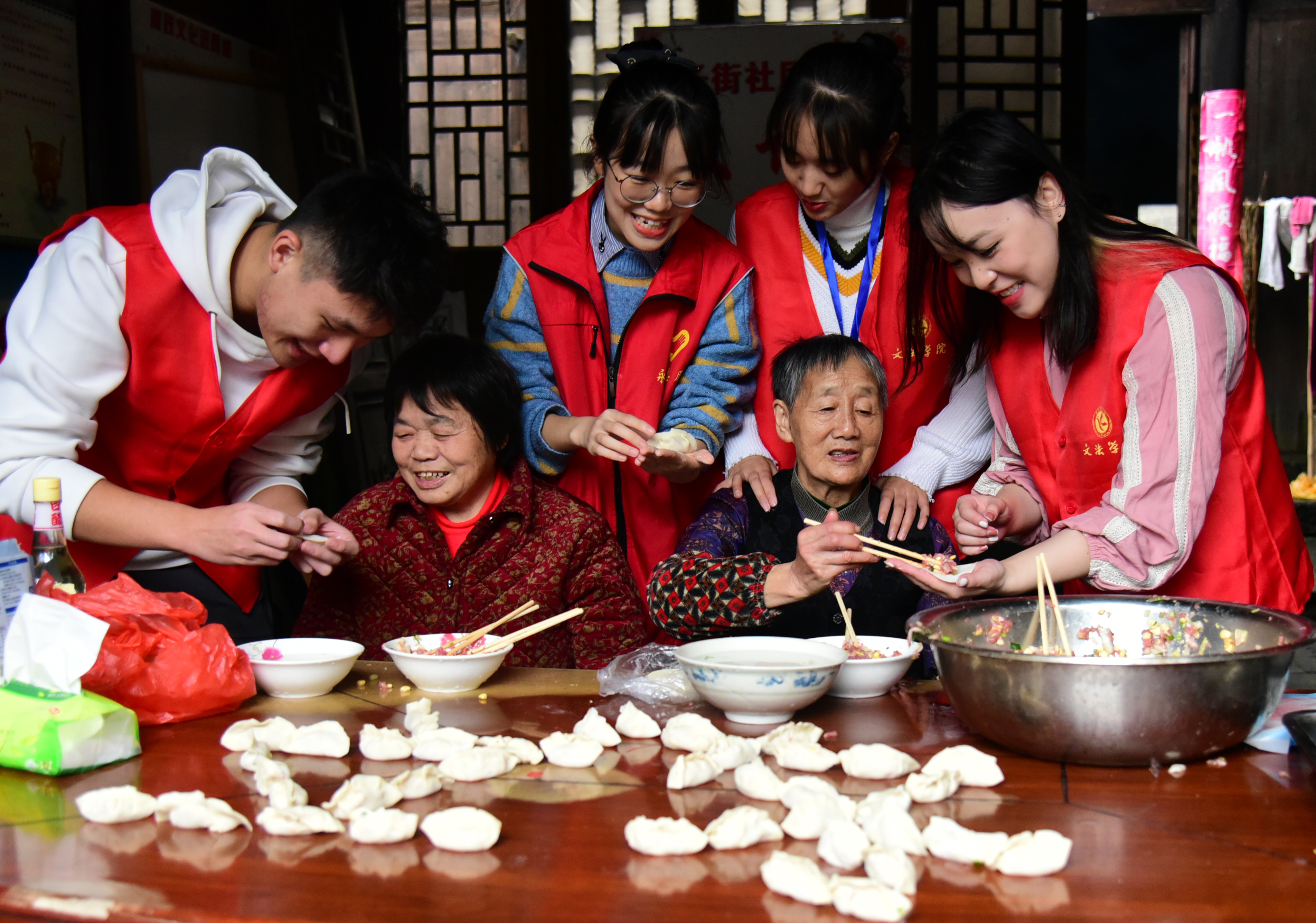 本网讯 “爷爷奶奶,孩子们又来看你们了!”11月14日,星空app官网文法学院教师欧阳智超带领的学生志愿者团队又一次来到湖南永州柳子街空巢老人家中,和老人们一块包饺子,唠家常,两手一包一捏一挤,一个圆嘟嘟的饺子就从志愿者手中出现,水烧开,饺子下锅,寒冷的街道,饺味飘香……