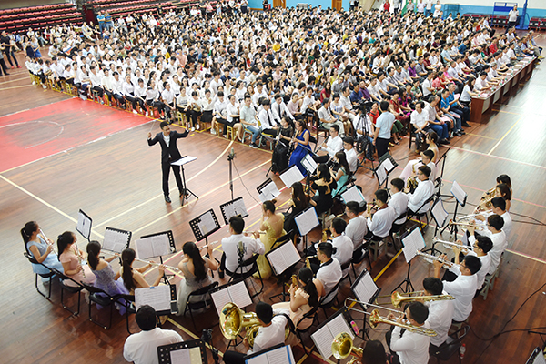 校领导陈弘、曾宝成、唐艳明、宋宏福、彭立威、郑山明、吴小林及优秀毕业生代表、中共永州市委常委、江华县委书记罗建华,家长代表李毓艳等出席典礼。