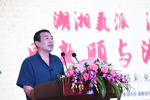 陈弘在致辞中对省委宣传部、省社科联、湖南卫视等专家媒体对我校的厚爱表示真诚的感谢。他指出,今天我们在这里一同分享王立新教授、张京华教授对周敦颐与湖湘文化的独到阐释,这是湖南社科界的一次精神盛宴,更是我校难得的一场文化甘霖。陈弘还深刻阐述了湘人周敦颐对中国传统文化产生的重大影响。他希望通过此次活动,进一步弘扬濂溪文化,为推进湖湘地域文化的发展奠定更加坚实的基础。