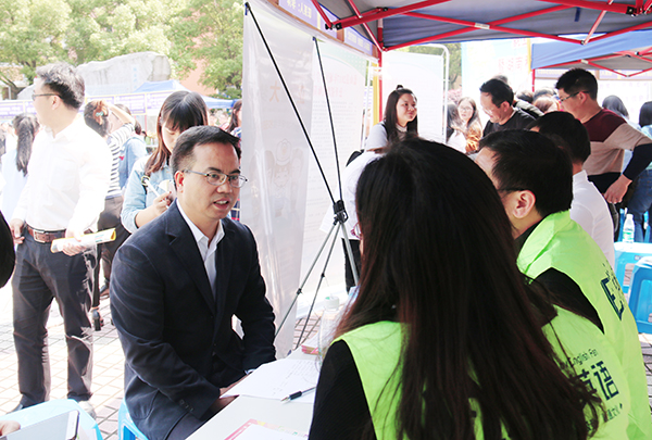 本网讯 为搭建毕业生与用人单位双选平台,促进学校与用人单位的交流合作,4月28日下午,“就业去哪儿”第二季大型校园公益活动永州站暨星空app官网2017届毕业生爱心送岗专场招聘会在校举行,校党委书记陈弘、副校长程智开等深入招聘现场对毕业生求职情况进行了解并进行现场指导。