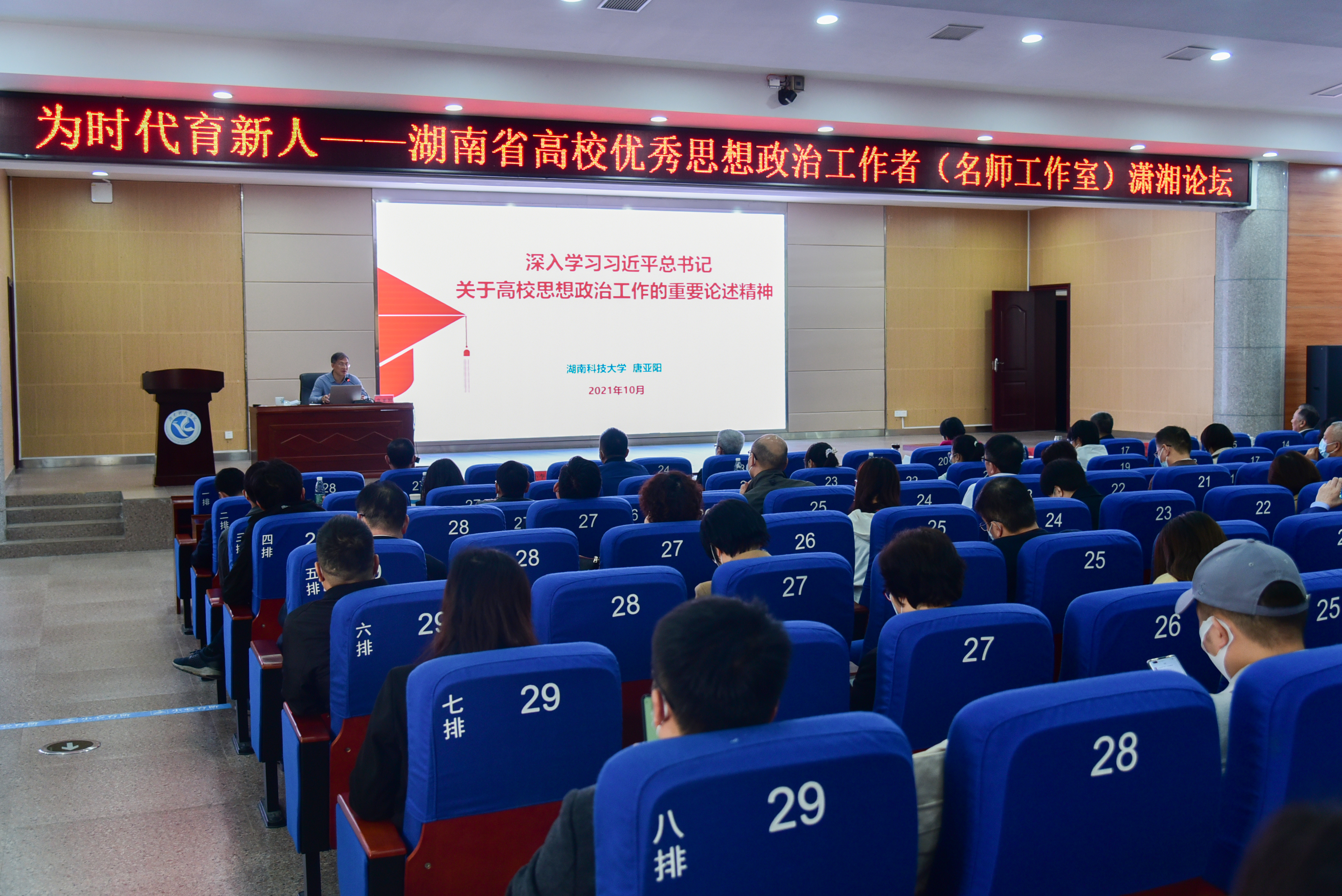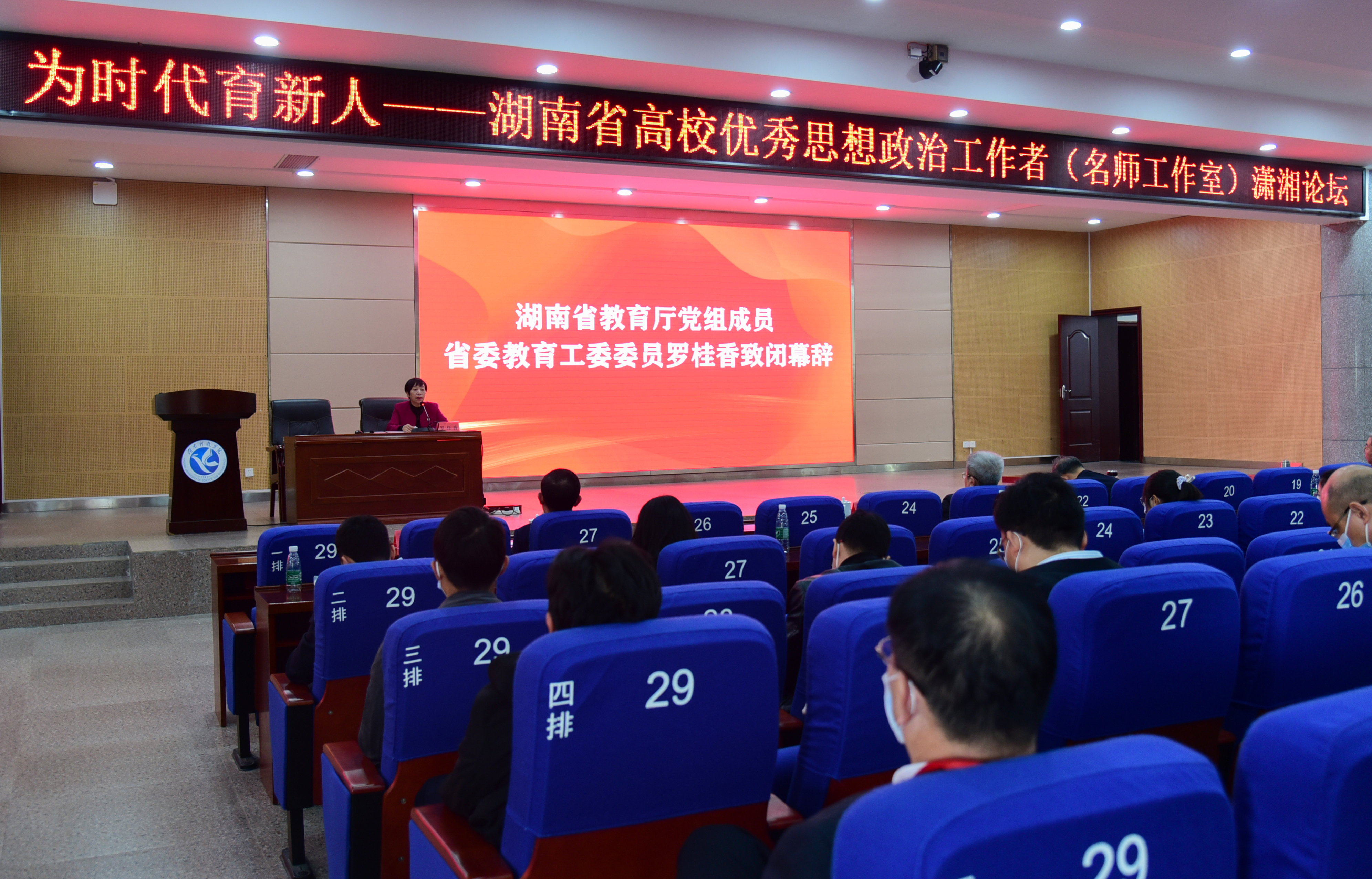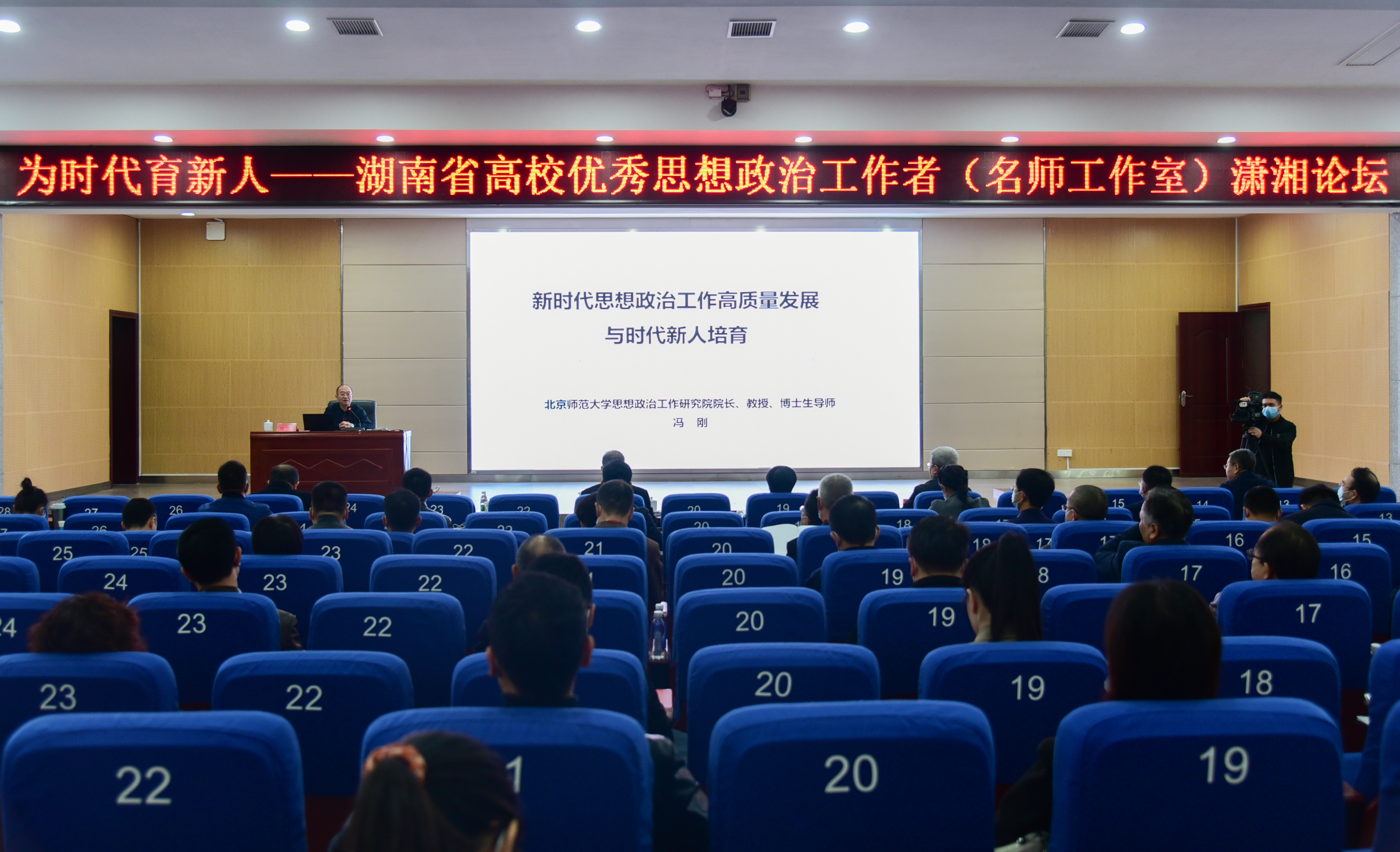本次论坛活动由中共湖南省委组织部、中共湖南省委宣传部、中共湖南省委教育工委(湖南省教育厅)主办,星空app官网承办,湖南省高校思想政治教育研究会协办,旨在落实《中国共产党普通高等学校基层组织工作条例》《关于新时代加强和改进思想政治工作的意见》,系统总结湖南自2019年1月入选全国“三全育人”综合改革试点区以来高校思想政治工作队伍人才建设的理论和实践创新成果,创新实施高校思想政治工作质量提升工程,纵深推进湖南省高校“三全育人”综合改革。首场论坛为高校优秀思想政治工作者名师工作室专场,教育部思想政治工作司副司长李景升寄语论坛,湖南省委宣传部副部长胡代松、省委教育工委委员,省教育厅党组成员罗桂香等参加开幕式并讲话。北京师范大学思想政治工作研究院院长冯刚、湖南科技大学党委书记唐亚阳作主题报告。30余名高校优秀思想政治工作者名师工作室项目主持人、首届高校最美思政课教师和辅导员代表作交流发言。专家学者们结合自身思政工作实践,围绕更好落实立德树人根本任务,从扎实推进名师工作室建设、加强思政课程建设、创新思想政治教育工作方法等开展全方位、多角度探讨,着力推进教学体系向育人体系转变,着力增强思政课吸引力和亲和力,着力提升思想政治工作针对性与实效性,为培育时代新人提供新动能。