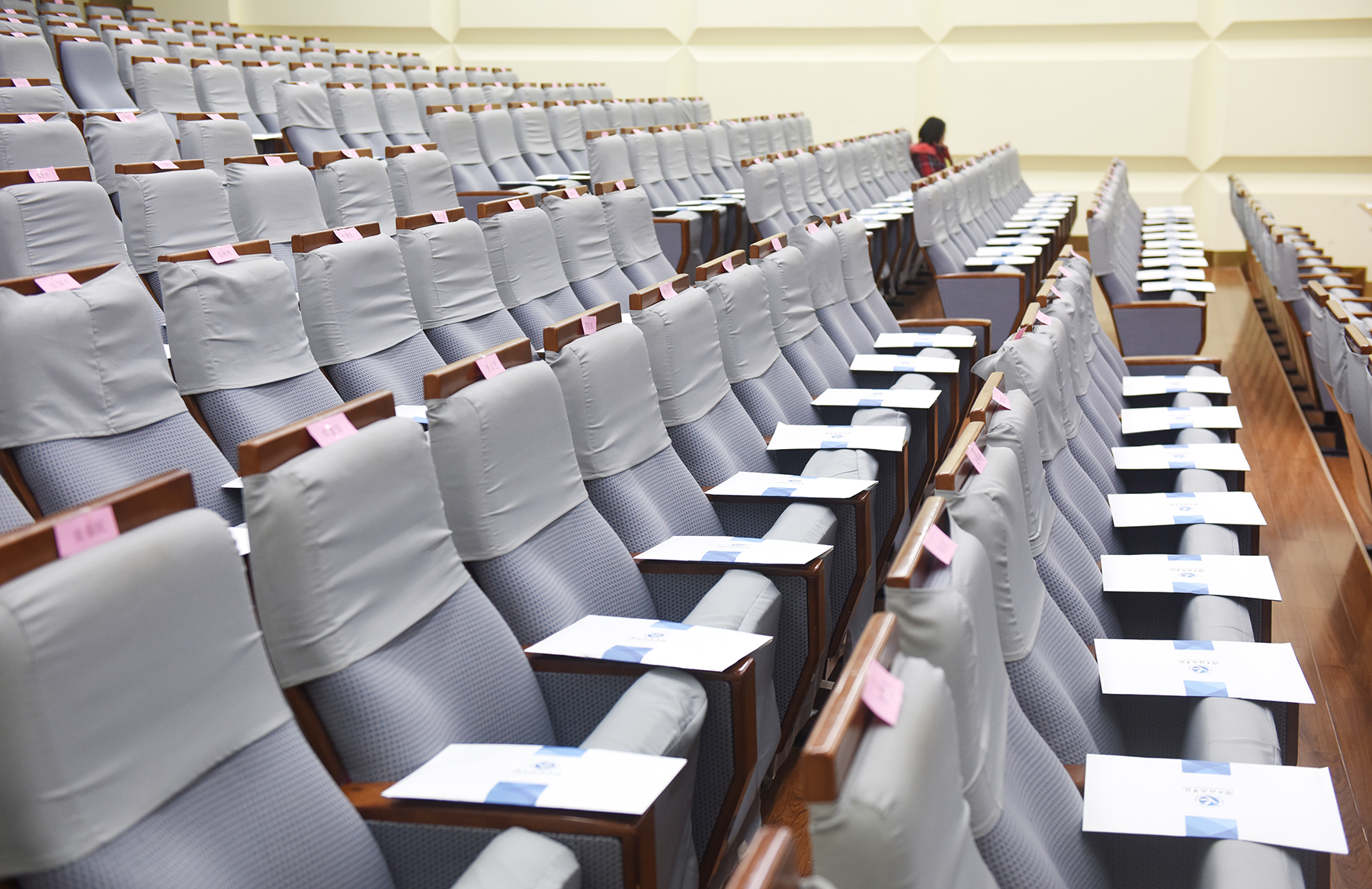3月11日早上7:50,会议现场摆放整齐的资料袋