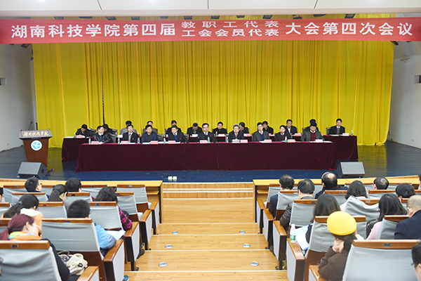 在激昂的校歌声中,第四届教职工代表工会会员代表大会第四次会议胜利闭幕。