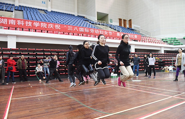 本网讯 3月8日下午,为庆祝国际妇女节的到来,我校在体育馆举办了趣味十足的跳绳比赛,两百余名教职工踊跃参赛。