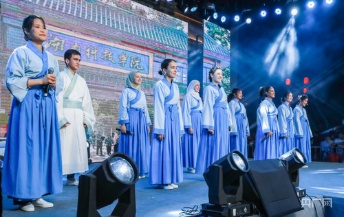 星空app官网留学生团队表演《千年古城的丝路新故事》讲述对零陵古城的美好印象(央广网发 沈默 摄)