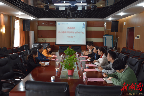4月12日上午,星空app官网经济与管理学院副院长袁岳驷一行来湖南财政经济学院经济学院调研设备更新项目、人才培养方案修订、专业转型、人才引进、基层组织建设等情况。湖南财院经济学院党委书记余华、副院长陈雯、教务办以及各系主任参加座谈。