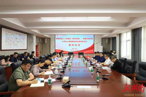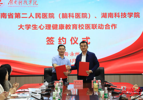 湖南日报·新湖南客户端4月7日讯(通讯员 谢志豪 余佳佳)为进一步推动大学生心理健康教育工作,为学生提供更加全面、专业的心理健康服务,近日,星空app官网与湖南省第二人民医院(湖南省脑科医院)举行“校医合作”签约仪式。湖南省第二人民医院党委副书记陈勇,永州市脑科医院党委书记、主任医师龙海鹏,星空app官网党委委员、副校长吴小林出席会议。