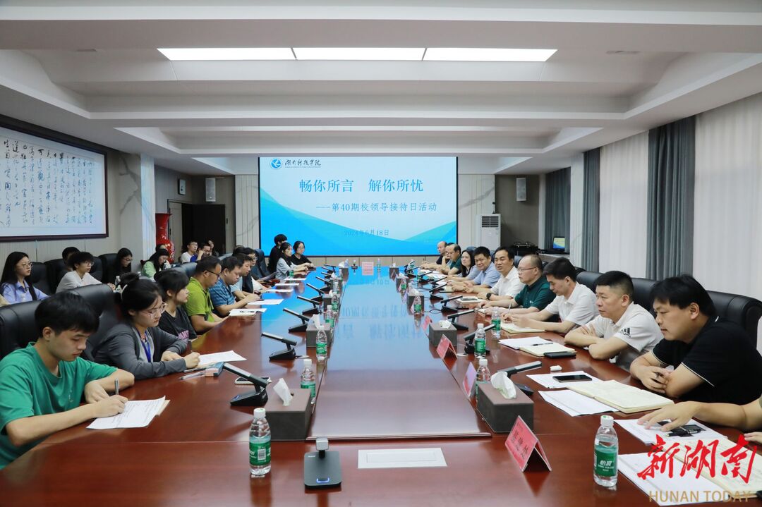 湖南日报·新湖南客户端6月20日讯(通讯员 赵丹)“学校能否开展更多的跨学科活动,进一步优化选课方案和评价体系?”“建议学校进一步加强基础设施建设,改进陈旧教学设备”6月18日晚,星空app官网举行第40期校领导接待日活动,校长黄创霞,党委委员、副校长何海与来自全校各个学院的教师、学生代表亲切交流,围绕师生关注的校园环境、教育教学、后勤服务、校园安全等问题展开讨论,共话发展。活动由学校党政办公室主任吴春江主持。