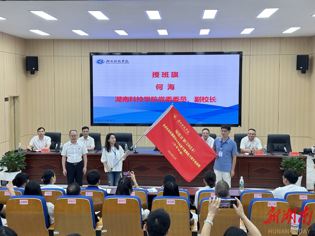 湖南日报·新湖南客户端6月18日讯(通讯员 曹湖云 江鸿湖 唐卉婉)6月17日上午,2024年“国培计划”永州市农村薄弱紧缺学科骨干教师能力提升培训班(小学科学)在星空app官网开班。星空app官网党委委员、副校长何海,永州市教育局党组副书记、副局长张荣华,永州市教师发展中心主任唐作明,正高级教师、第十四届全国人大代表胡国柱,以及来自永州市各县区的80名小学科学教师参加了开班典礼。