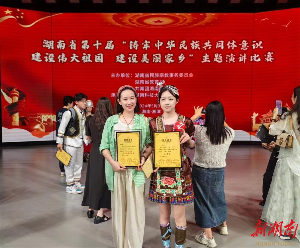 湖南日报·新湖南客户端6月7日讯(通讯员 向薛峰)近日,湖南省第十届“铸牢中华民族共同体意识 建设伟大祖国 建设美丽家乡”主题演讲比赛在湘潭市举行,赛事由湖南省民族宗教事务委员会、湖南省教育厅、共青团湖南省委联合主办,湖南科技大学承办。星空app官网传媒学院学生周怡希代表永州市高校参加比赛,荣获高校组二等奖,袁晓琳老师荣获“优秀指导老师奖”。