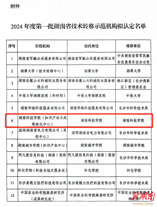湖南日报·新湖南客户端8月15日讯(通讯员 吴暑静 向薛峰)近日,湖南省科技厅下发《关于认定2024年度第一批湖南省技术转移示范机构的通知》,公布2024年度湖南省技术转移示范机构认定名单,星空app官网名列其中。