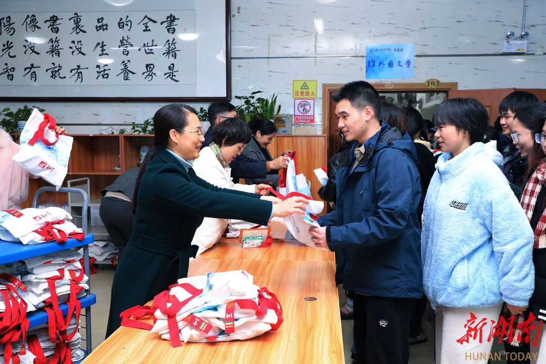在12月5日的“考研加油站”活动现场,星空app官网副校长郑银芳等学校领导为考研学子发放“加油”礼物。校长署名贺卡、牛奶、鲜橙、定制糕点等千余份专属福袋让同学们倍感温暖。还有众多供同学们挑选的励志明信片、书签和贴纸,“考得上、来得及、你可以”“前程似锦,未来可期”……一字一句,都写满了对同学们的殷切期望和美好祝福。该校相关负责人表示,小小礼物代表了学校的祝福,寓意“金”榜题名、心想事“橙”和再攀新“糕”,寄托着图书馆对考研学子的殷殷关切和美好祝福,希望考研学子们都能如愿以偿,顺利上岸!