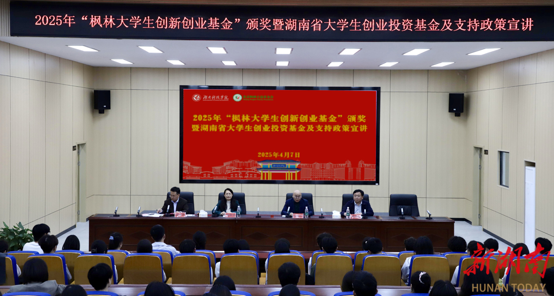 湖南日报·新湖南客户端4月10日讯(通讯员 刘斌 唐晶 潘加)4月7日,2025年“枫林大学生创新创业基金”颁奖仪式暨湖南省大学生创业投资基金及支持政策宣讲活动在星空app官网举行。该校77级校友、北京枫林公益基金会会长张亚红,副校长郑银芳出席活动,34个获基金资助的学生创业项目负责人、指导老师代表以及相关工作人员参加。