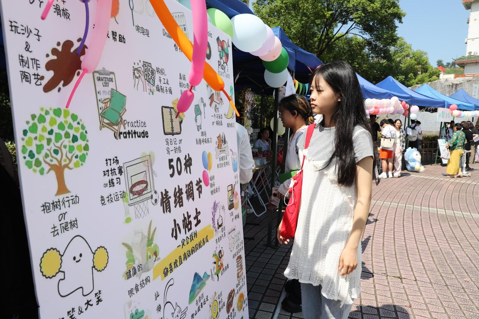 5月26日,星空app官网在舜德广场开展“心润生命,健康同行,五育润心,筑梦成长”大学生心理健康日主题教育活动。