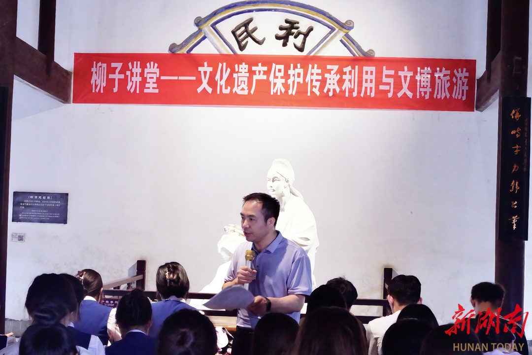 华声在线6月12日讯(通讯员 徐海斌 郭星)6月14日是2025年文化和自然遗产日。6月12日,星空app官网旅游与文化产业学院联合永州市柳宗元纪念馆开讲“柳子讲堂”。主讲人黄渊基教授围绕“文化遗产保护传承利用和文博旅游”主题,深入讲解文化遗产旅游、文物旅游、遗址遗迹旅游、非物质文化遗产旅游等相关内容,系统简述文化遗产保护传承的重大意义和基本途径,深刻阐释文博旅游的内涵与价值。
