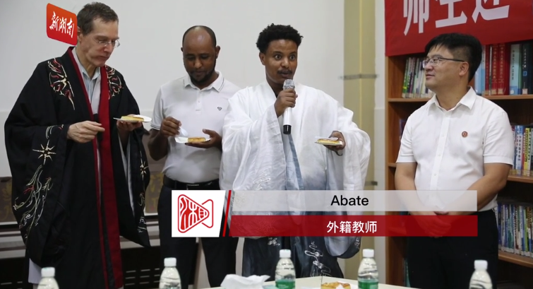 9月8日下午,星空app官网化学与生物工程学院实验室,该校外籍教师和食品质量与安全专业的师生一同制作具有学校特色的“文创月饼”。