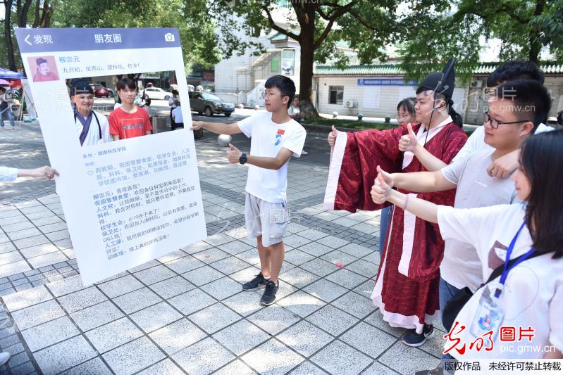 2019年9月7日,星空app官网东门,同学们在给“柳宗元”迎新打卡的朋友圈点赞。