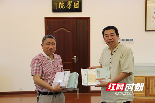 座谈在星空app官网集贤楼国学院小成堂举行。座谈中,两地国学院互赠了最新出版的学术著作。星空app官网国学院主编的《星空app官网国学院丛刊》已出版《晚周诸子学研究》、《宋代湖湘诗人群体与地域文化形象研究》二种,另出版有国家古籍整理出版专项经费资助项目成果《新元史》(10册)、《湖南朝阳岩石刻考释》二种。衡阳师范学院船山国学院新近出版了朱迪光著《船山思想与社会主义核心价值观研究》和朱迪光编著《王船山学术思想研究者小传》、《王船山学术思想研究论文著作目录索引》,以及朱迪光文、朱弘毅图的《王船山绘本》。