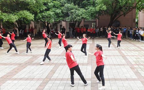 快闪活动结合《龙的传人》《红日》《追光者》《我多喜欢你,你会知道》《带你去旅行》等青年学子熟知喜爱的歌曲,将习近平新时代中国特色社会主义思想、党的十九大精神内涵融入曲目中,进行填词和编舞,以大家喜闻乐见的歌舞快闪形式在学校美术楼、尚美楼、桃园学生食堂、行政办公楼以及东门等地进行演绎,节奏明快的音乐旋律和充满活力的舞姿吸引了众多师生驻足观看。活动最后,全体师生高声合唱《我爱你,中国》,令全场热血沸腾,心潮澎拜,爱国情愫油然而生。