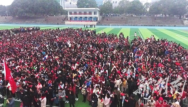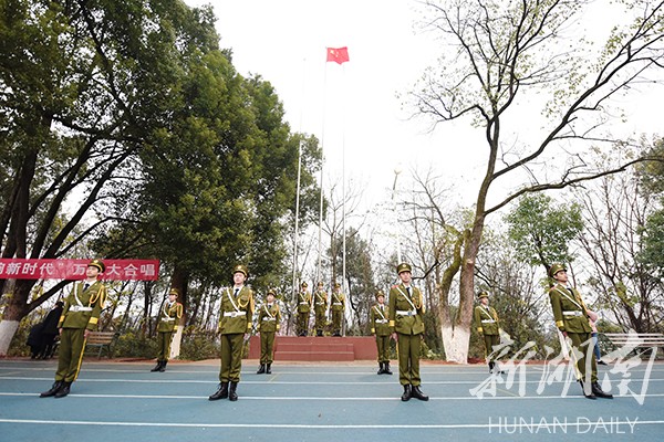 新湖南客户端12月29日讯(通讯员 熊玲芝 张云芳 何帅文)“五星红旗迎风飘扬,胜利歌声多么响亮;歌唱我们亲爱的祖国,从今走向繁荣富强……”12月29日早上,一阵阵嘹亮的歌声响彻星空app官网上空,气势恢宏、热情激昂的“万人大合唱”在田径场举行,以迎接新年的到来。