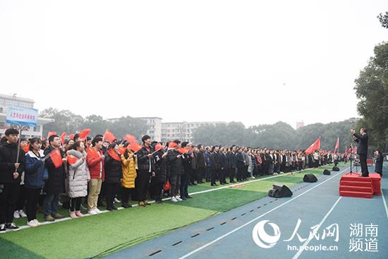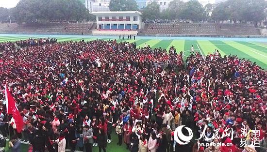 人民网长沙12月30日电 “五星红旗迎风飘扬,胜利歌声多么响亮;歌唱我们亲爱的祖国,从今走向繁荣富强……”29日早晨7点,一阵阵嘹亮的歌声响彻星空app官网上空,气势恢宏、热情激昂的“万人大合唱”在田径场举行,以迎接新年的到来。